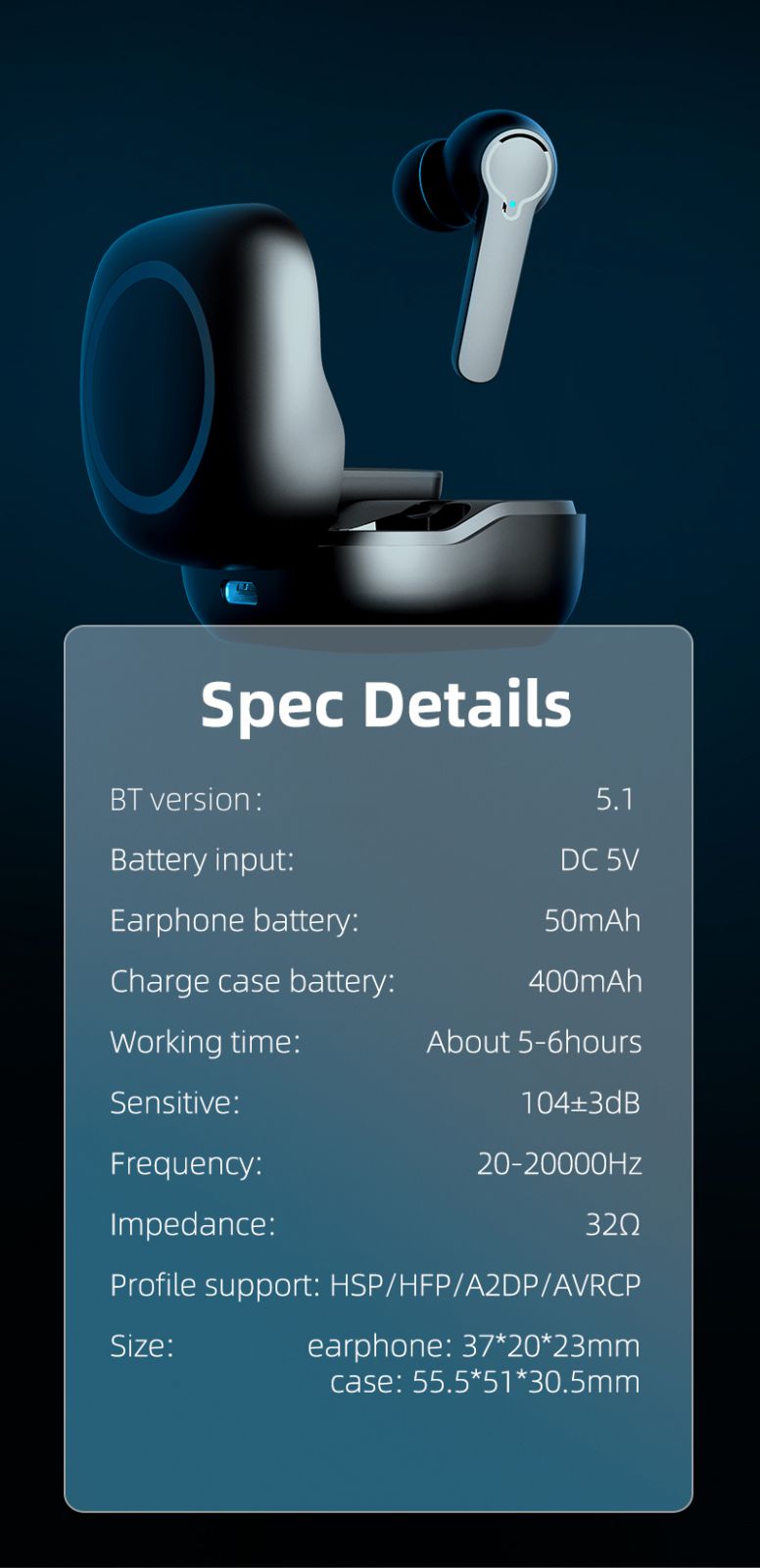 Truly Wireless Earbuds Headphone BT Noise Cancelling Waterproof TWS Earphone