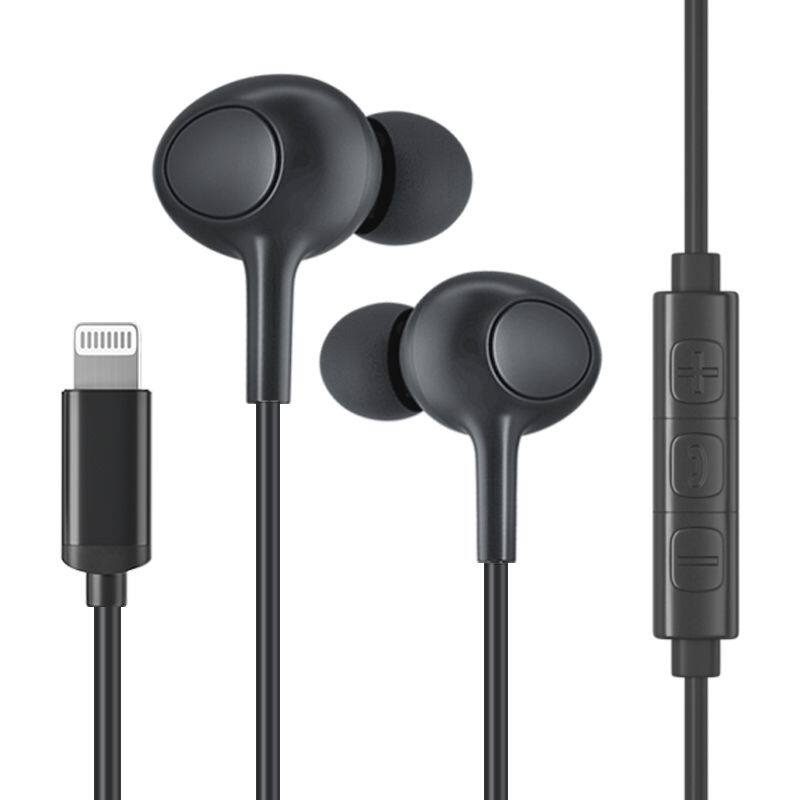 Lighting Earbuds Black Earphones for Apple Mfi Chip Headphone Wired for New Iphone