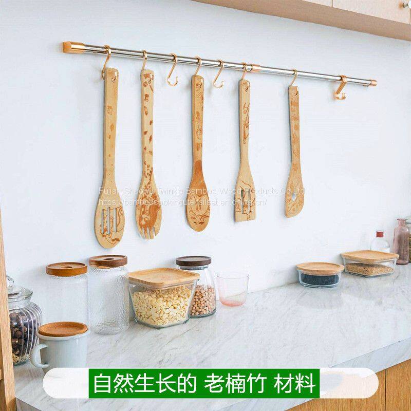 5pcs bamboo cooking utensil set engraved 6pcs bambu kitchen set burned /