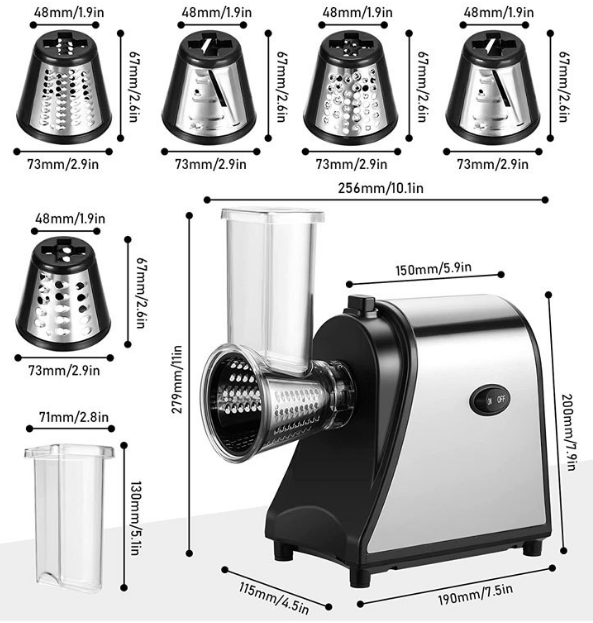 It can Shredding, slicing, grinding, mashed potato, mash,