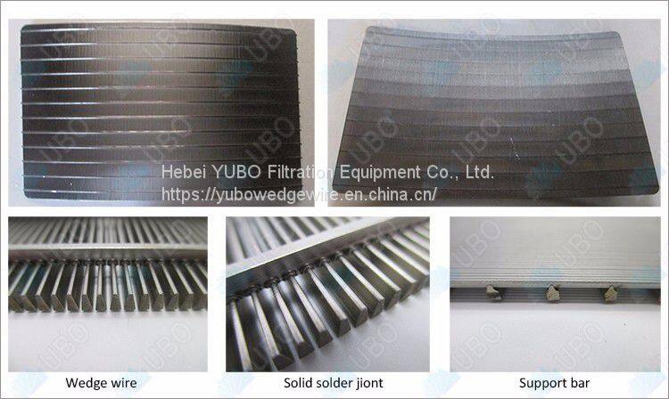 YUBO is a v wire screen manufacturer and custom provides SS wedge wire screen panels for filtration which are made from V-shaped profile wire, with a unique welding process, offering great strength, precision, long service life, and a wide range of applications in the field of process, engineerings such as sugar juice filtration, wastewater treatment, crude oil, and natural gas production and vessel internals solving problems of solid/liquid and solid / gas separation, filtration of oils, greases, paints, food products, water, fuels, liquid cooling agents, chemicals.
