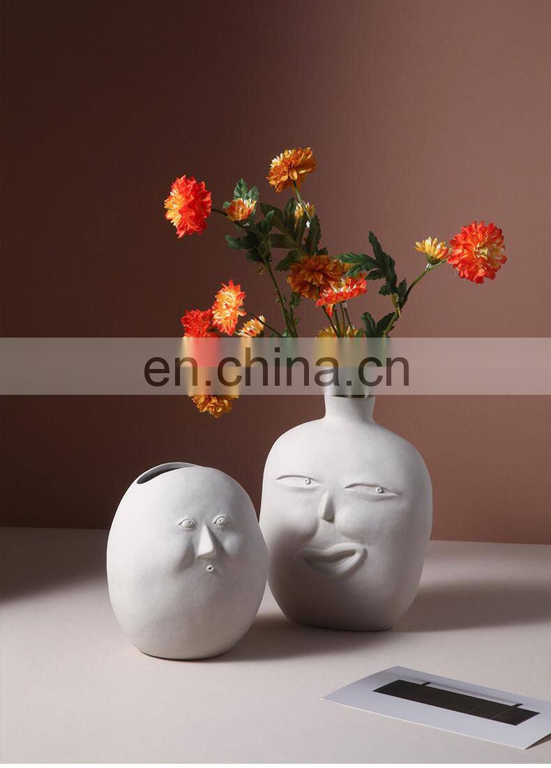 Wholesale Nordic Ceramic Vase White Human Face Sculpture Art Matte Adornos Ceramic Flower Vase Home Decor