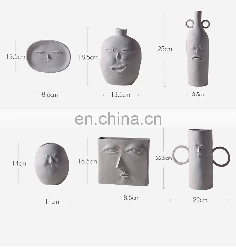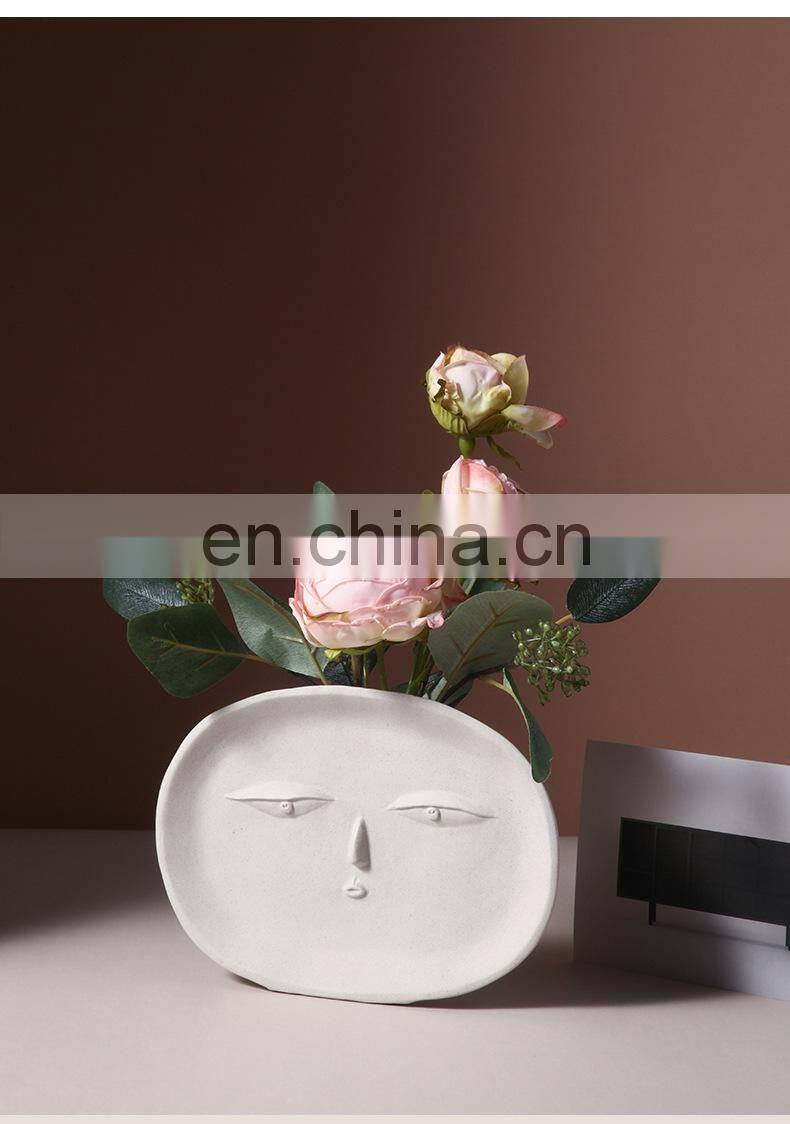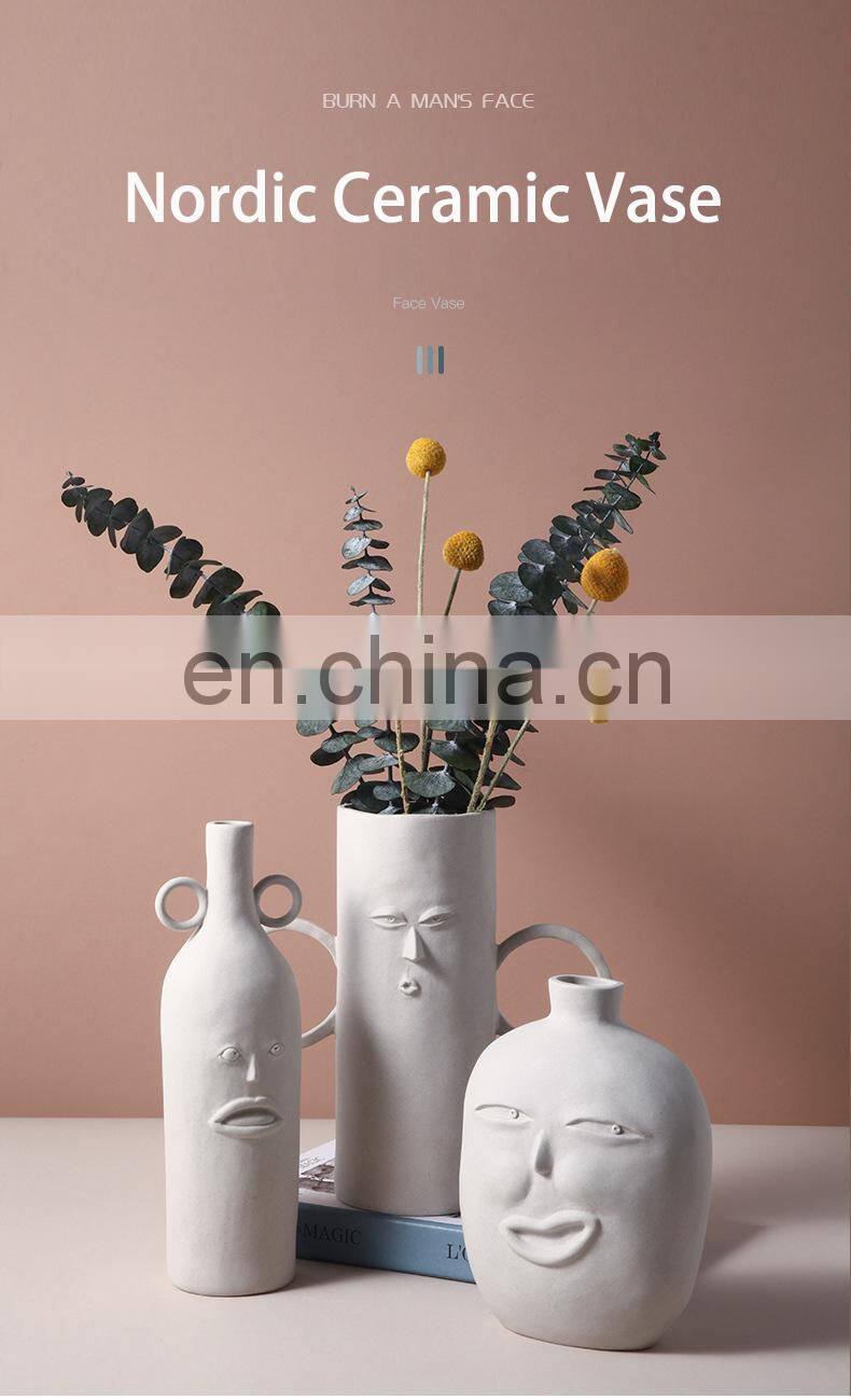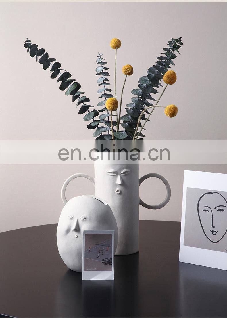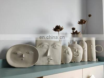 New Ins Nordic Face Vase White Abstract Human Faces Esculturas Wabi-Sabi Flowerpot Ceramic Vase For Home Decor