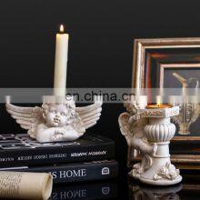Shabby Chic Home Decor Vintage Angel Pillar Candle Holder Cupid White Resin Candle Holders For Photo Shoot Props