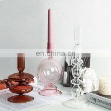 Nordic Long Stem Glass Candle Holder Pink Crystal Bougeoir En Verr Glass Candle Holders For Home Decor House Decoration Interior