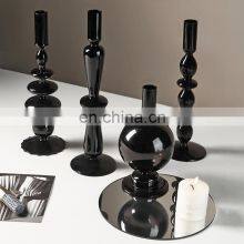 Nordic Black Candle Stick Holders Photo Props Portavelas De Cristal Long Stem Glass Candle Holders For Hygge Dekoration Wohnzimm