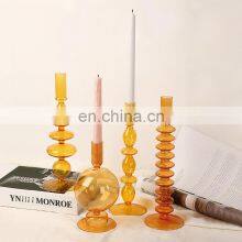 INS Crystal Candlestick Holder Nordic Candelabro Orange Porta Velas De Cristal Amber Glass Candle Holders Trending Home Decor