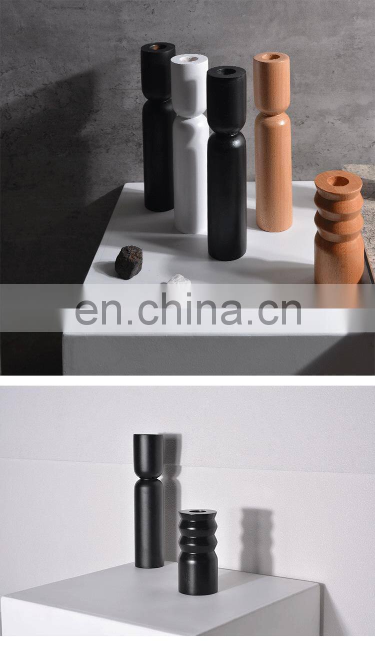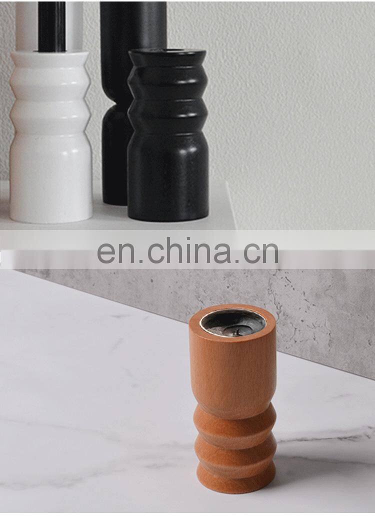 Vintage Nordic Wood Candle Holders Hygge Beech Black White Wavy Wood Candle Jar Wooden Candle Holder Home Decocr