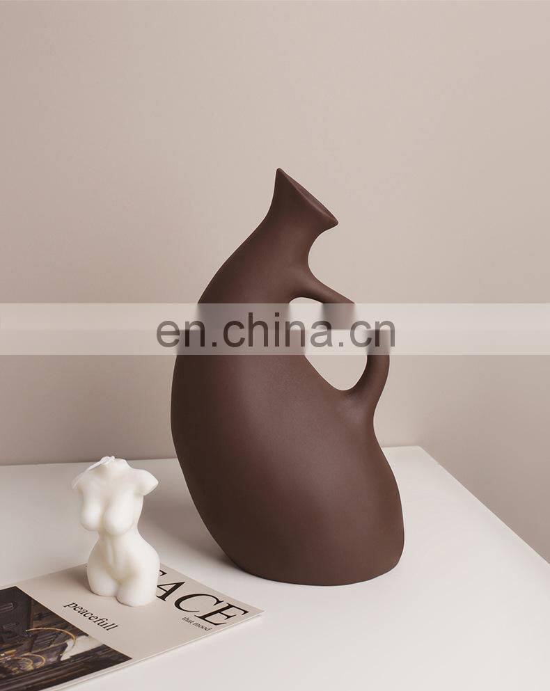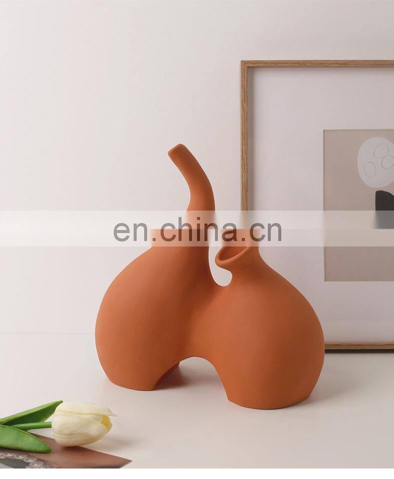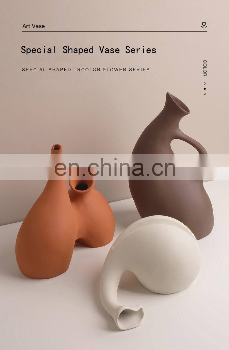 Nordic Decorative Cheap Handmade Vase Wedding Candle Holder Art Irregular Flower Plain Pottery Ceramic Vase
