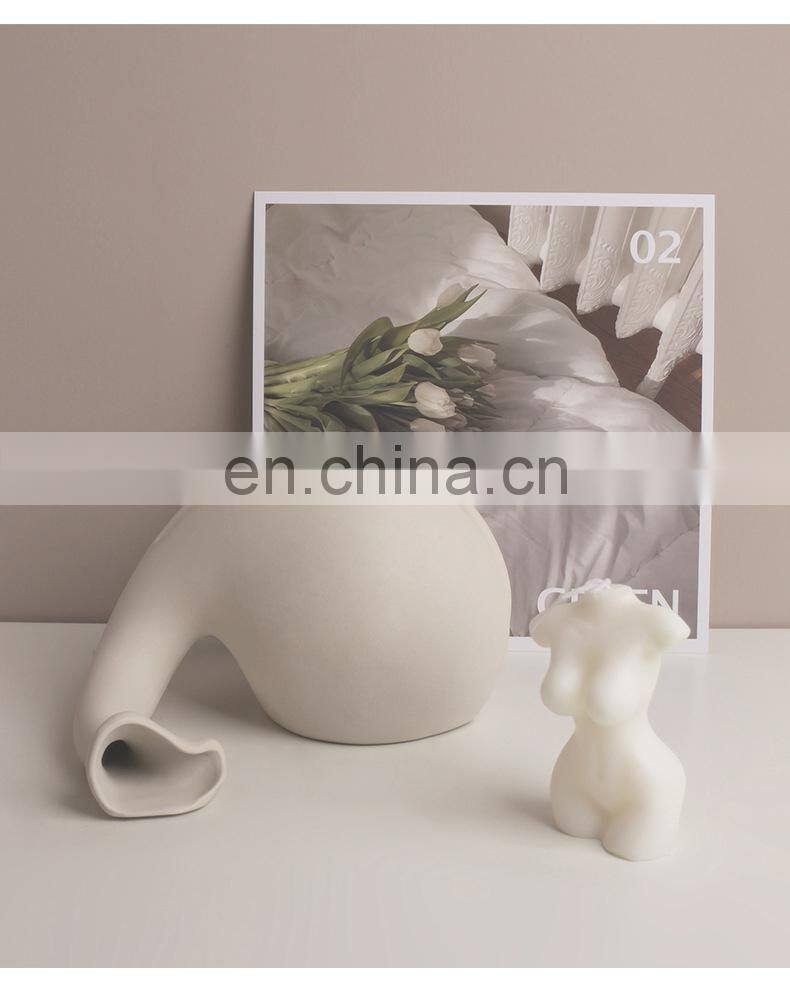 Modern Decorative Handmade Art Porcelain Home Decor Matte White Creative Body Shape Pot Flower Small Ceramic Vase Nordic