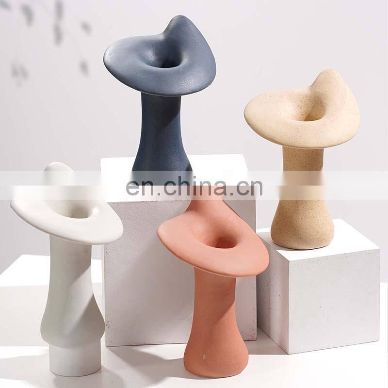 Nordic Decorative Cheap Handmade Vase Wedding Candle Holder Art Irregular Flower Plain Pottery Ceramic Vase