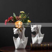 Nordic Silhouette Vase Floreros Burning White Side Face Head Shaped Bust Statues Ceramic Vase For Home Decor
