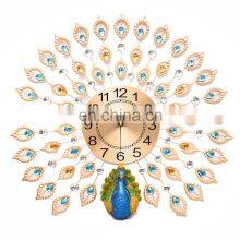 2022 Hot Custom LOGO Size Vintage Iron Creative 3D Gold Peacock Wall Clocks Non Ticking Mute Silent Wall Decoration Home Decor