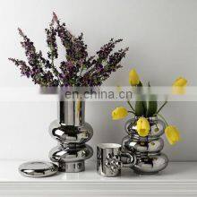 Modern Creative Luxury Doughnut Shaped Ceramic Silver Plated Mirror Hydroponic Art Ceramic Silver Vase For Home Decoration