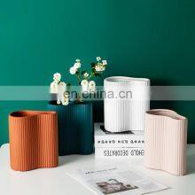 Wholesale Creative Special-Shaped Vertical Pattern Nordic Modern 7-Inch Vase Ceramic For Home Wedding Decor