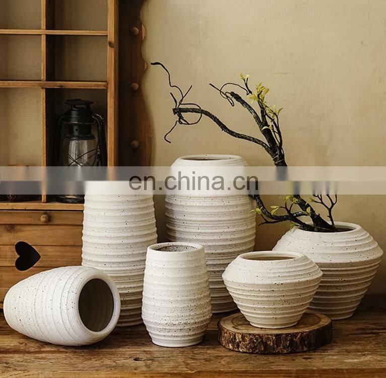 Wholesale Creative Special-Shaped Vertical Pattern Nordic Modern 7-Inch Vase Ceramic For Home Wedding Decor