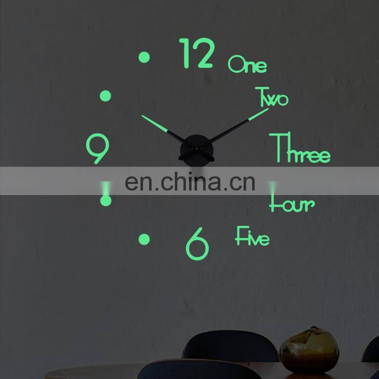 Home > Products > Home Decoration > Wholesale Big Wall Clock Custom LOGO 3d Night Light DIY Luminous Watch Acrylic Non Ticking Wall Clocks Home Decor