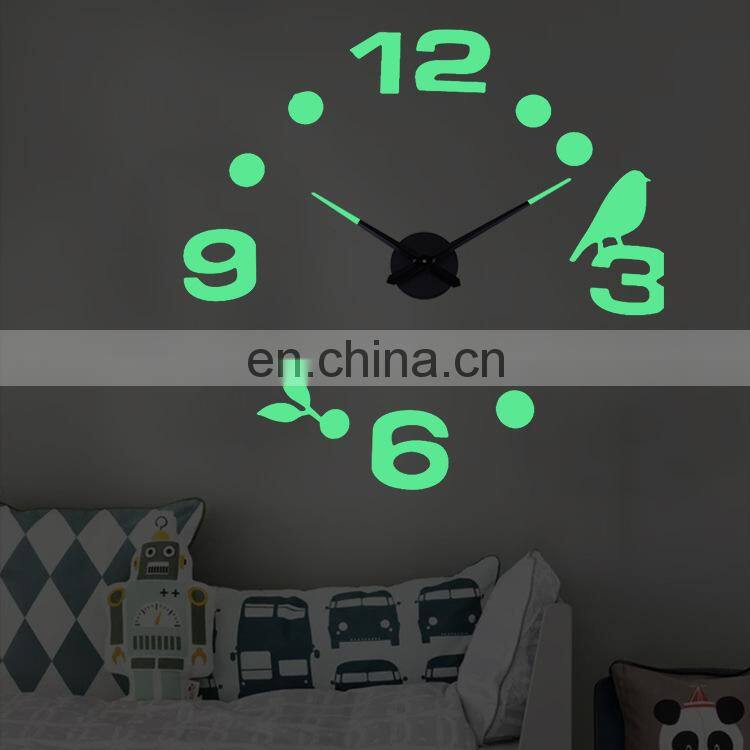 Wholesale Big Wall Clock Custom LOGO 3d Night Light DIY Luminous Watch Acrylic Non Ticking Wall Clocks Home Decor