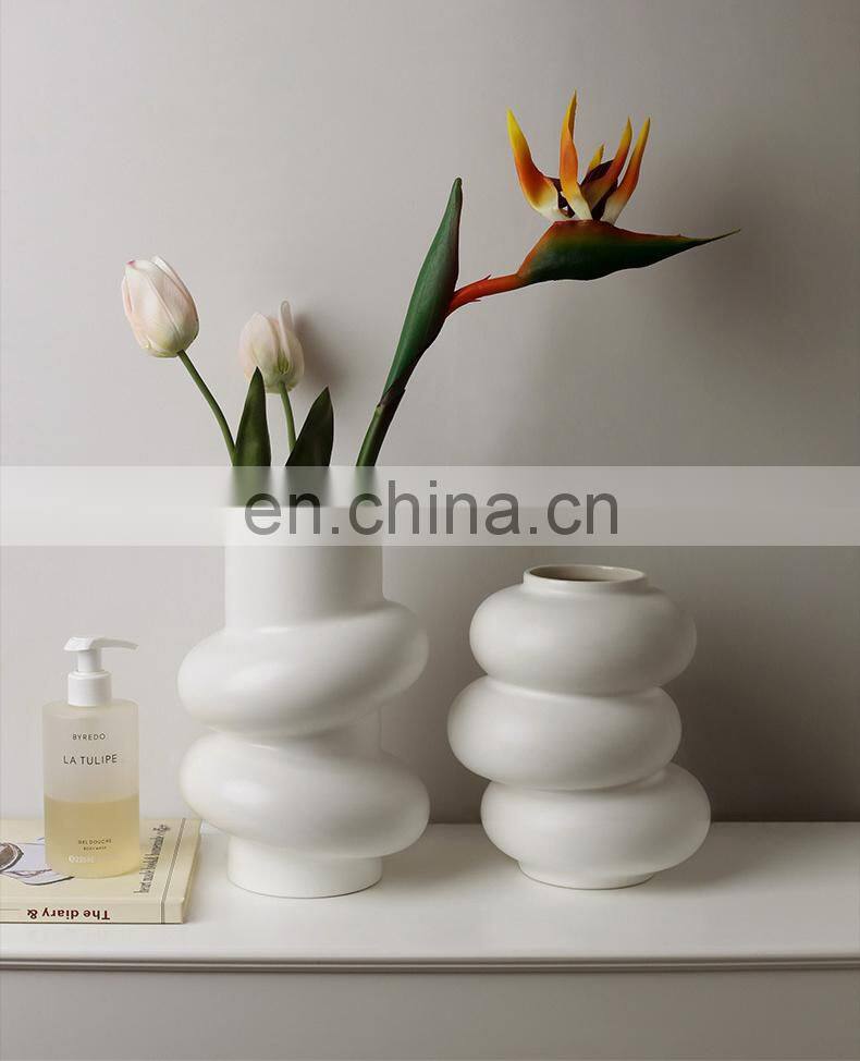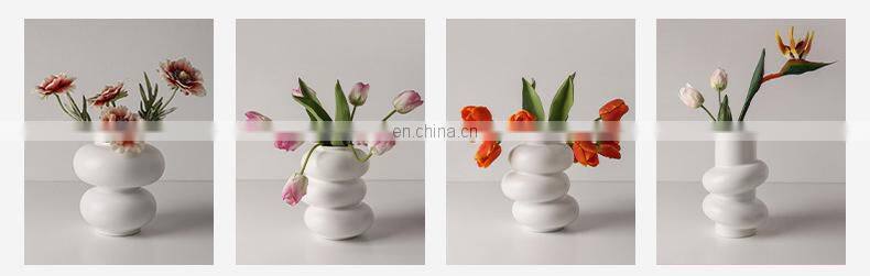 Custom Nordic Boho Vase Creative Irregular Home Decor Flower Ornaments White Porcelain Ceramic Vase Pot For Gift Set Ceramic