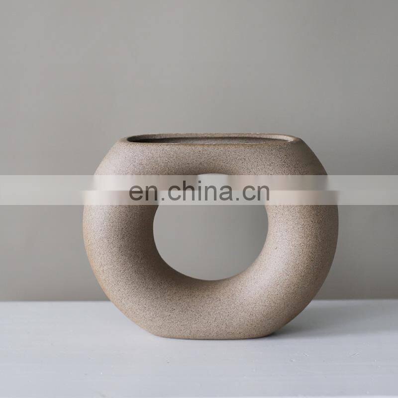 Hot Sale Home Decor New Frosted Flower Plain Ceramic Nordic Donut Vase For Wedding Centerpiece