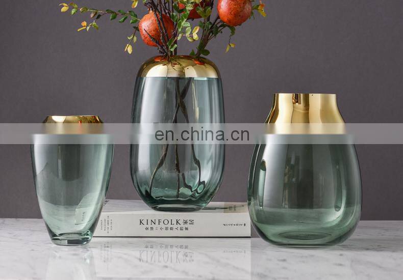 Hot Sales Cheap Morden Nordic Gold Plated Sitting Room Decoration Hydroponic Plants Pot Glass Vase