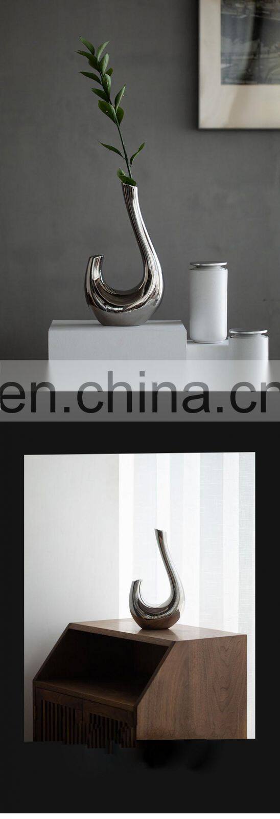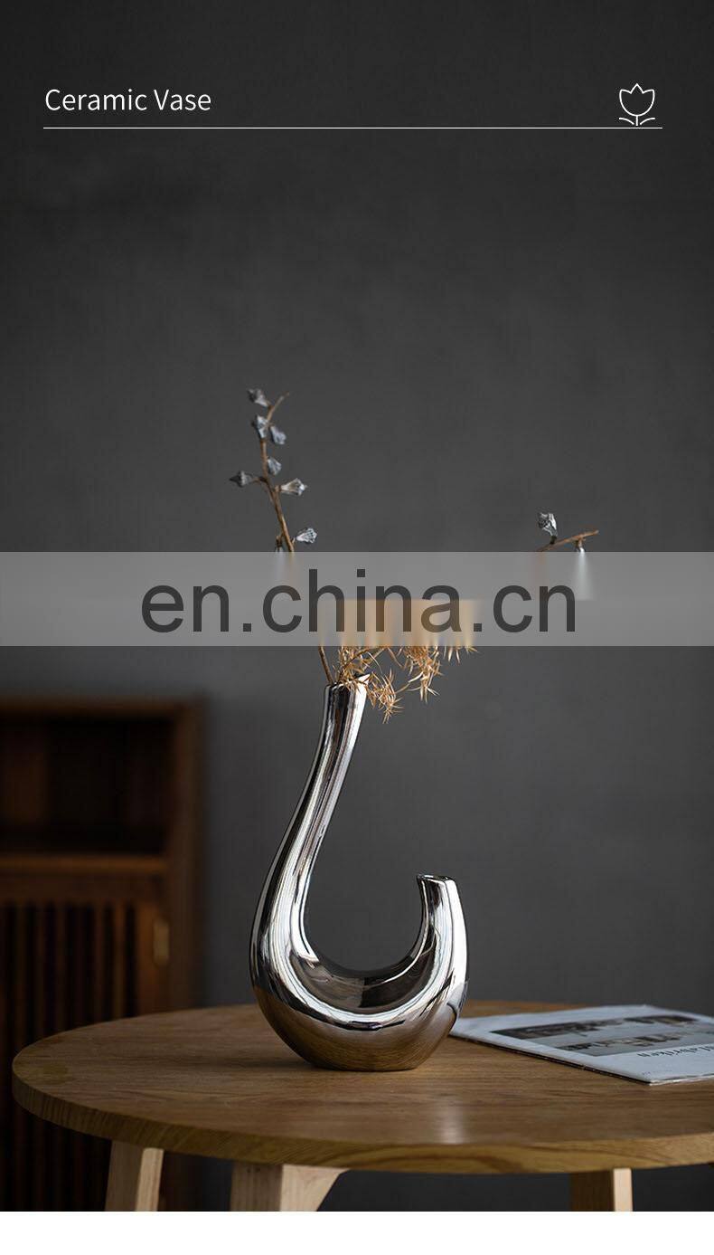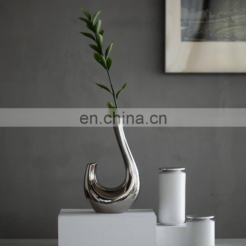 Korea Modern INS Minimalist INS Style Ceramic Swan Neck Silver Plating Home Decor Ceramic Vase