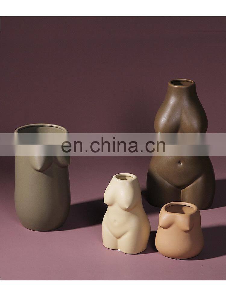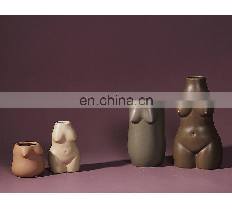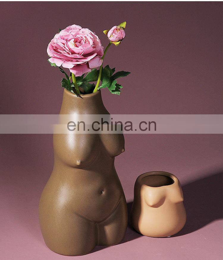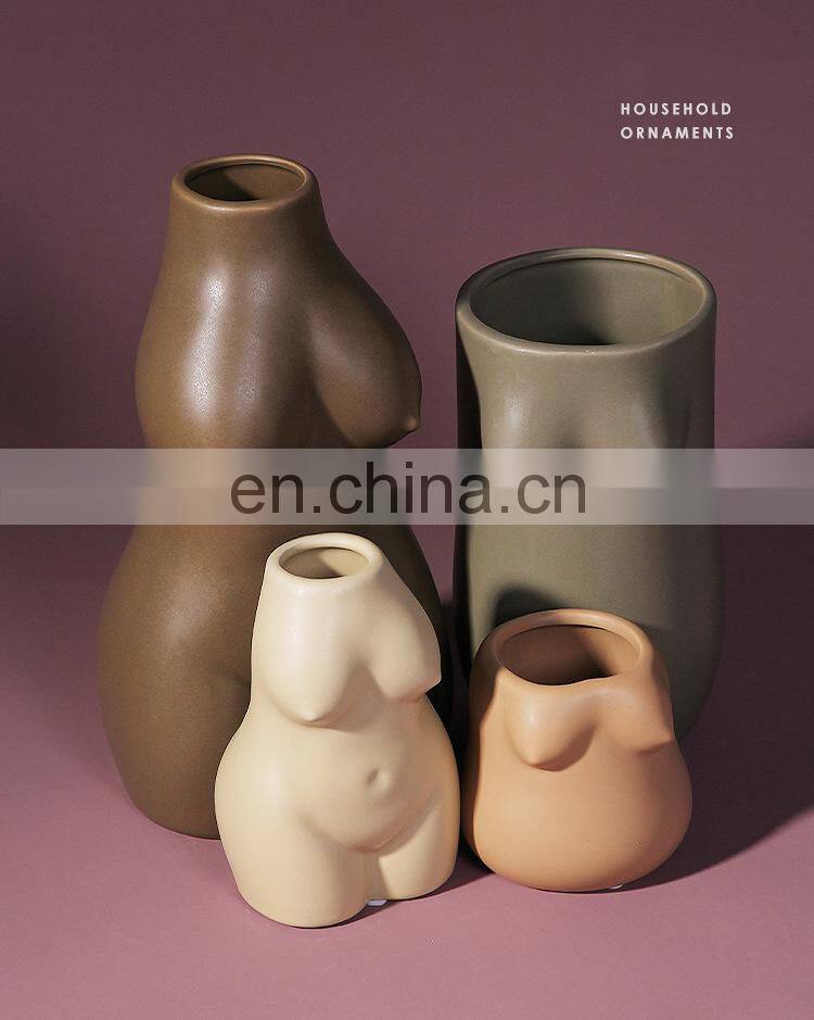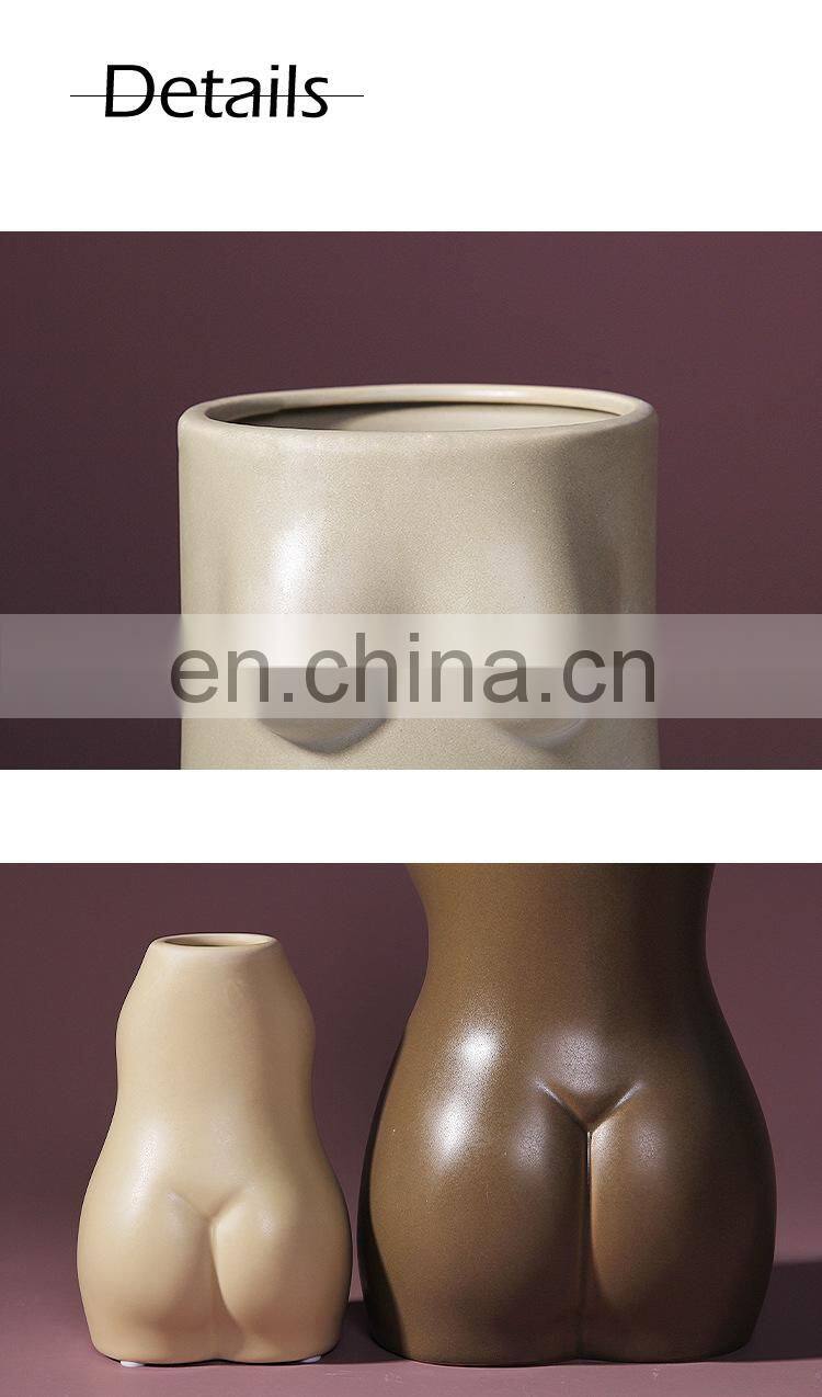 Drop Shipping Nordic Figurines Frosted Design Human Body Model Home Room Flowers Decorative Ornament Ceramic Vase
