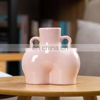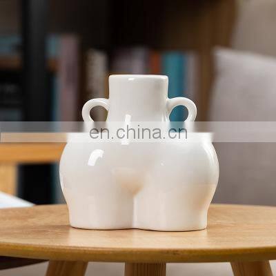 Nordic INS Figurines Creative Design Model Home Decorative Abstract Handmade M Body Base Art Ceramic Flower Vase