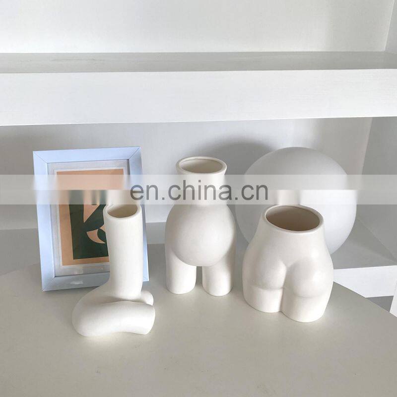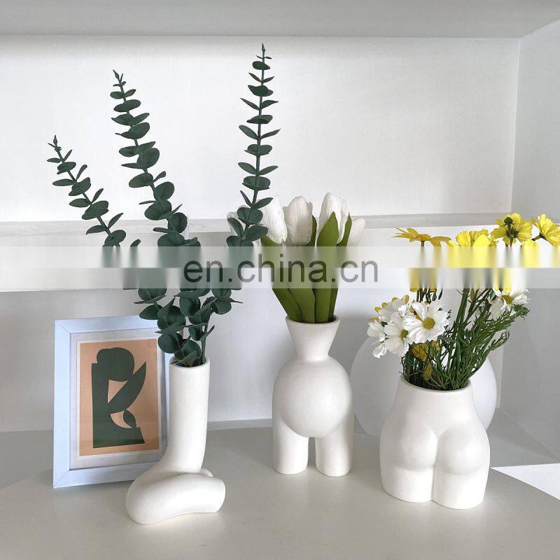 Nordic INS Figurines Creative Design Model Home Decorative Abstract Handmade Body Base Art Ceramic Flower Vase