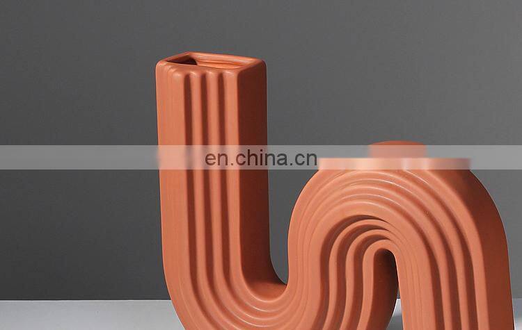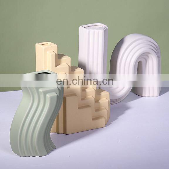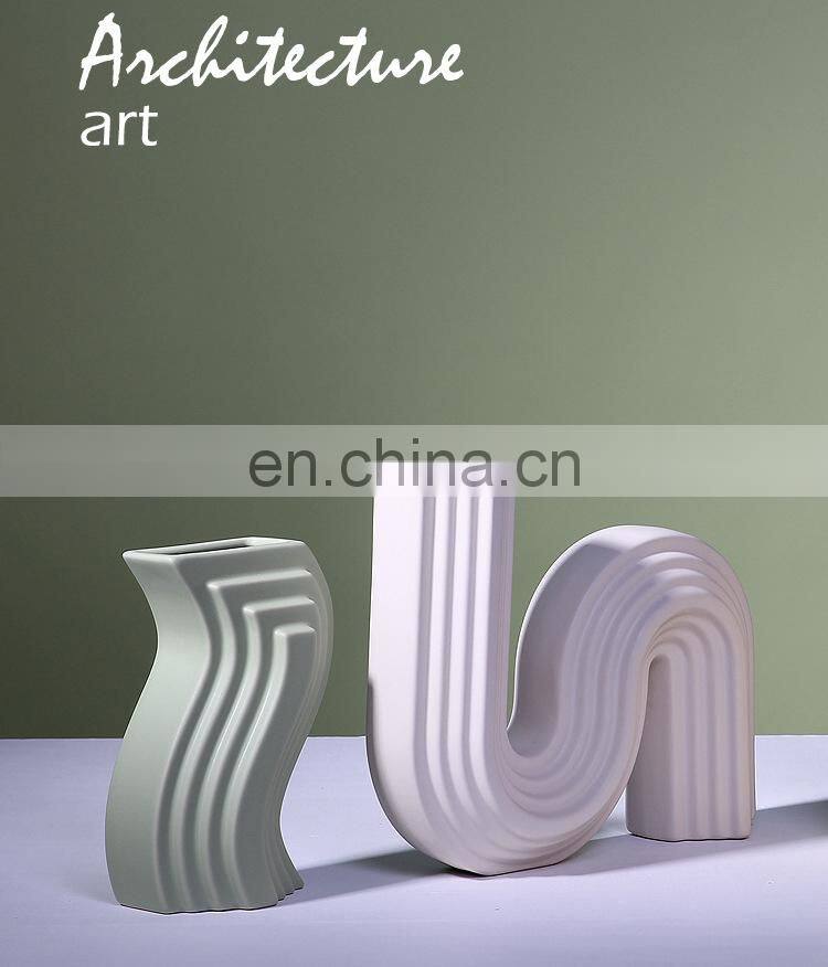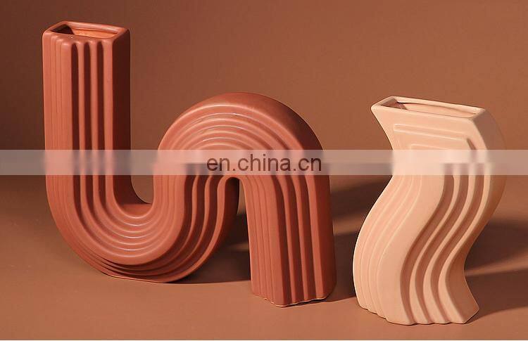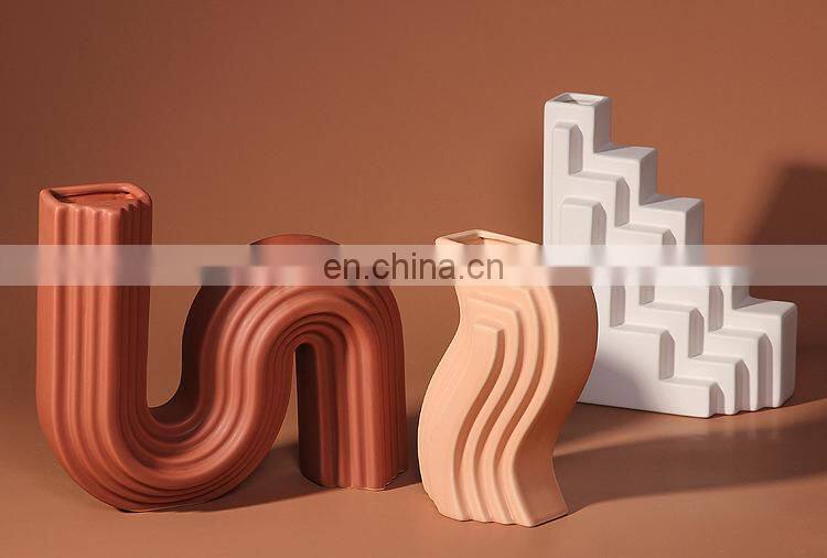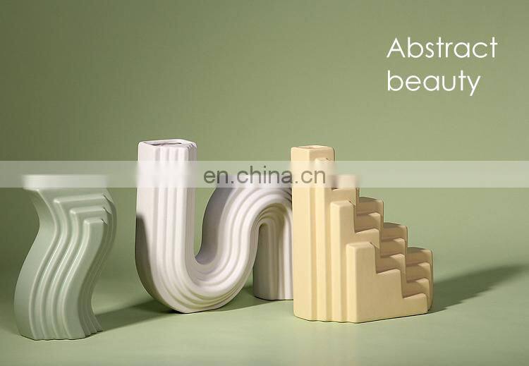 Morandi Color Modern Nordic INS Style Geometry Design Model Home Decorative Flowers Ornament Ceramic Vase
