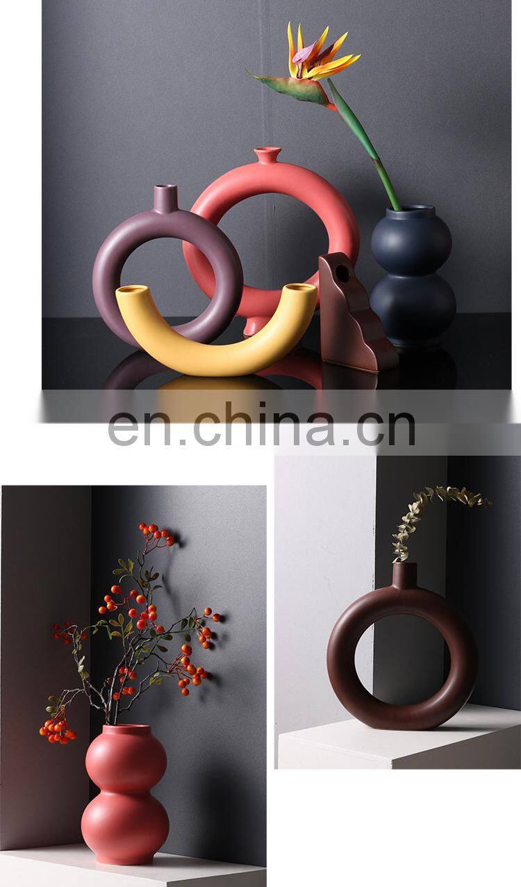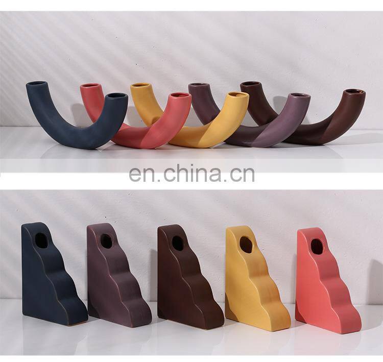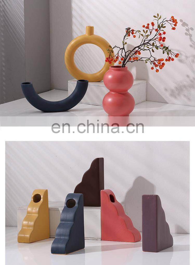 Morandi Color Modern Nordic INS Style Geometry Design Model Home Decorative Flowers Ornament Mini Ceramic Vase