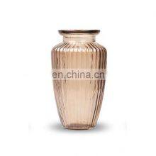 New Design Wholesale Wedding Home Decorative Creative Round Clear Brown Gold Glass Pot Flower Vase