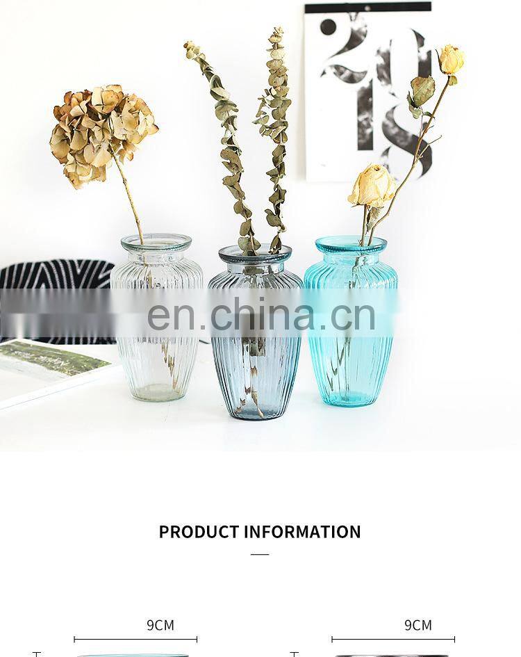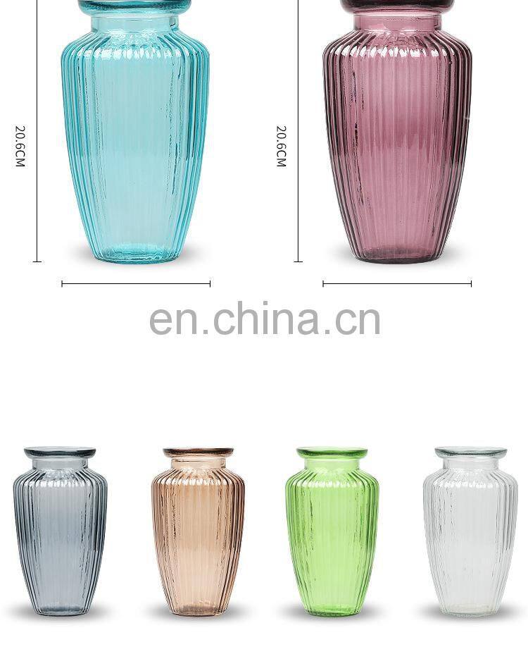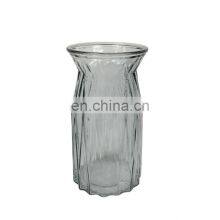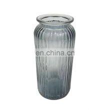 New Design Wholesale Stripe Modern Wedding Decorative Tabletop Creative Small Round Clear Grey Glass Pot Flower Vase Home Decor
