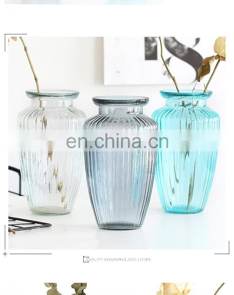 New Design Wholesale Nordic Stripe Modern Wedding Home Decor Decorative Tabletop Creative Round Clear Grey Glass Pot Flower Vase