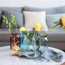 New Design Wholesale Home Wedding Unique Decorative Normal Size Nordic Blue Flower Glass Vase