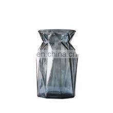 New Design Wholesale Nordic Wedding Creative Geometry Modern Grey Crystal Flower Glass Vase Tabletop Home Decoration