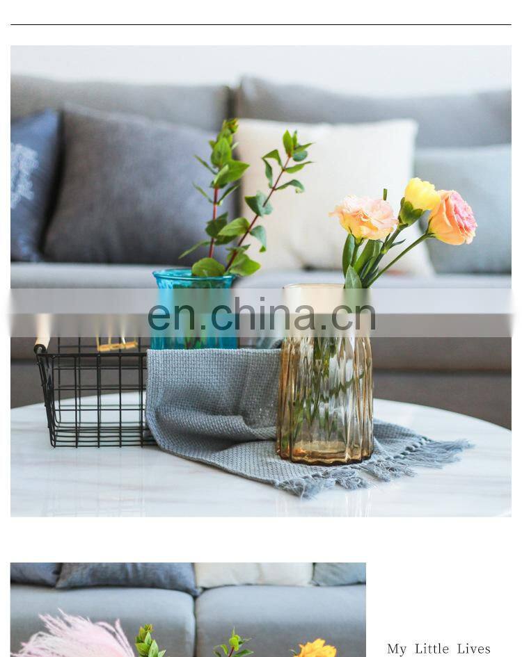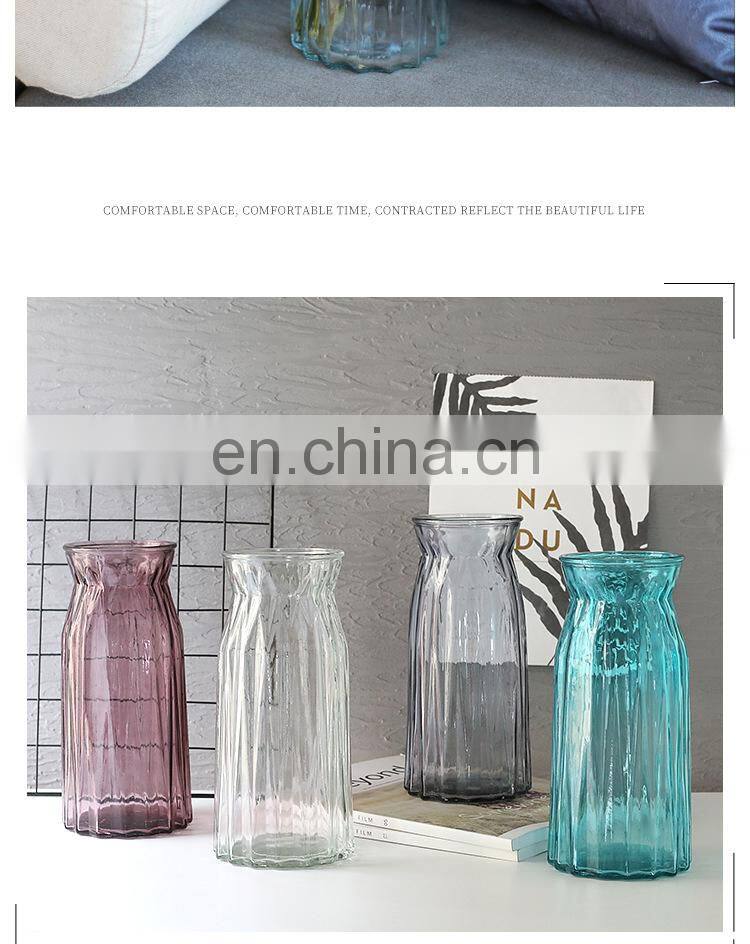 New Design Wholesale Nordic Stripe Modern Wedding Home Decor Decorative Tabletop Creative Round Clear Grey Glass Pot Flower Vase