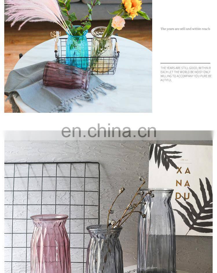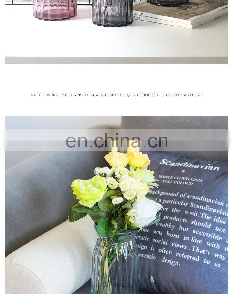 New Design Wholesale Nordic Wedding Creative Geometry Modern Grey Crystal Flower Glass Vase Tabletop Home Decoration