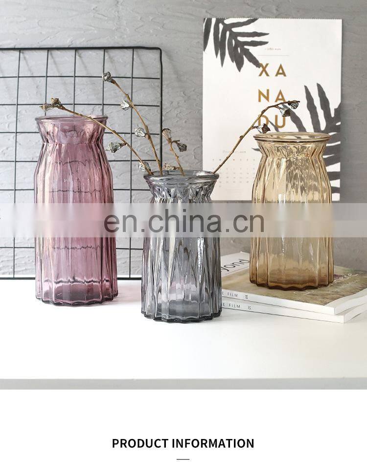 Home > Products > Home Decoration > New Design Wholesale Nordic Stripe Modern Wedding Home Decor Decorative Tabletop Creative Round Clear Grey Glass Pot Flower Vase