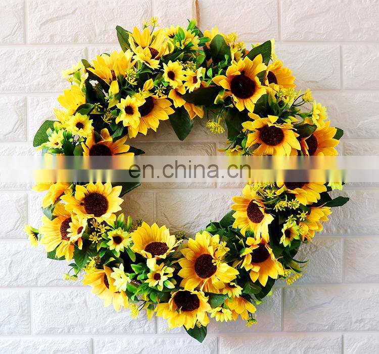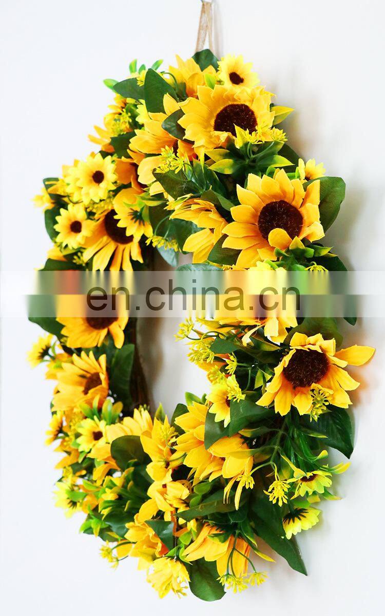 Wholesales Amazon Best Selling Artificial Flowers Large Size Home Door Wall Decoration Sunflower Wreath Ring