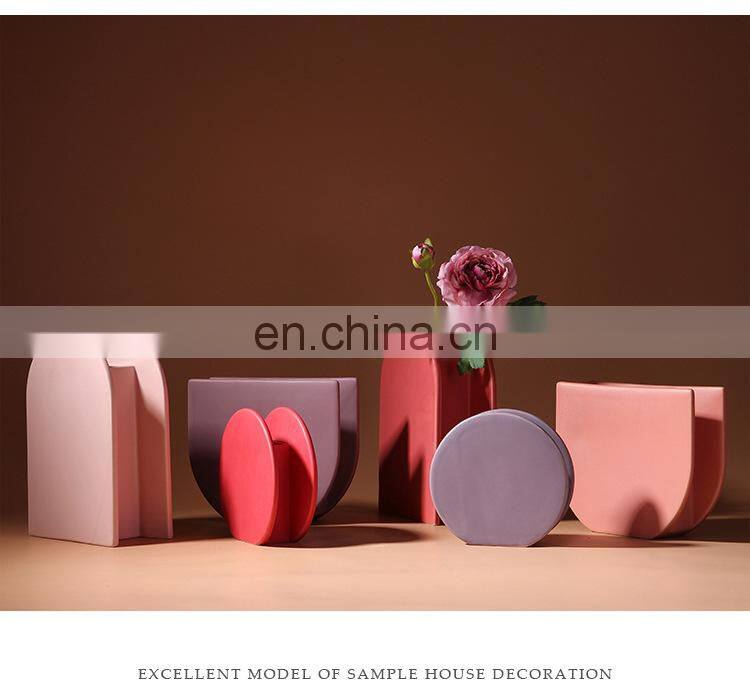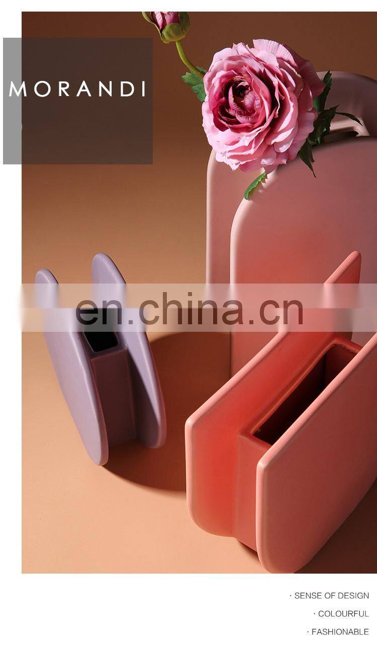 Morandi Matt Color Nordic INS Style Geometry Figurines Frosted Design Model Home Room Flowers Decorative Ornament Ceramic Vase