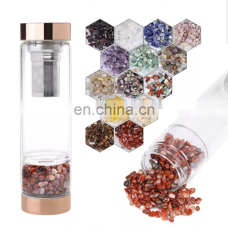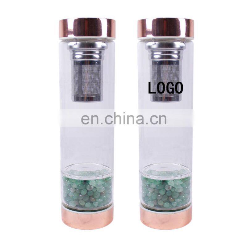 Amazon Sales Filter Water Bottle Stainless Steel Rose Gold Plated Natural Rose Quartz Healing Crystal Infused Glass Water Bottle