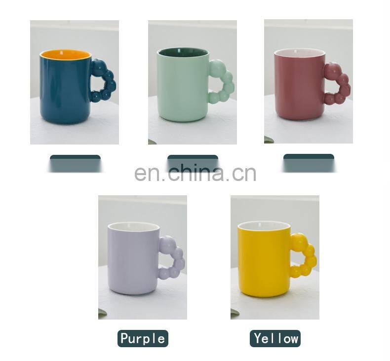 INS Nordic Mug Set 11 Oz Purple Cup With Tanghulu Handles Ceramic Mugs With Bead Handgrip For Valentine'S Day Gift Ideas