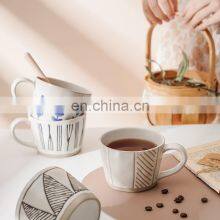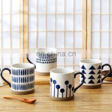 Cheap Price 12 Oz Nordic Seramik Kupa Moon Cup Blue Flowers Triangle Stripe Handmade Ceramic Mugs For Valentine'S Day Gift Ideas