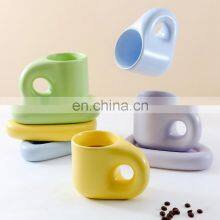 Wholesale INS Nordic Tazza Mug Yellow Purple 14 Oz Tazas Kawaii Morandi Fashion Mug Ceramic Cups For San Valentino Gifts