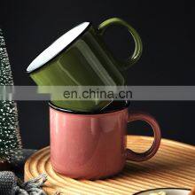 Promotional 14 Oz Tazas Esmaltadas Vintage Tazas-Ceramica-Mayor Tazas Cafe Ceramic Enamel Mugs For Birthday Gift