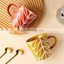 Wholesale Drinkware Set 14 Oz Dessert Cup Tazas De Navidad Handmade Leaf Tazas Ceramic Mugs For Couple Gift