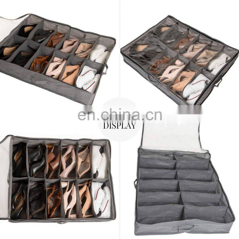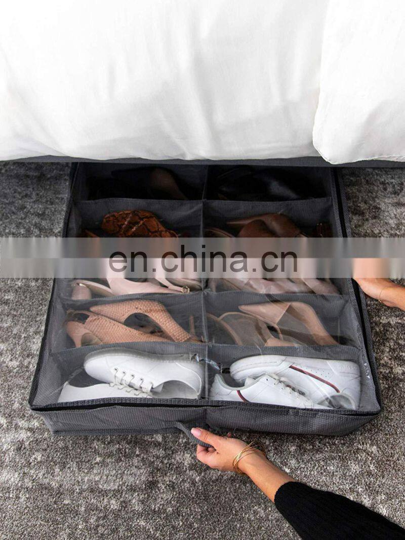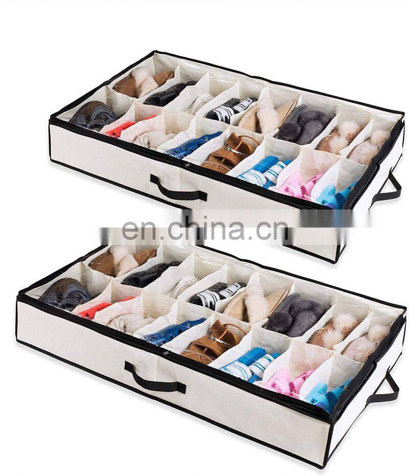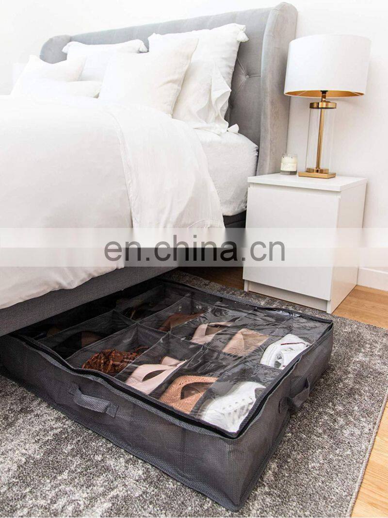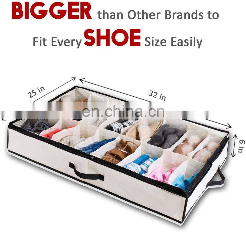 Wholesale PVC Breathable Under Bed Shoe Storage Box Closet Storage Solution With Clear Window Fits Total 12 Pairs