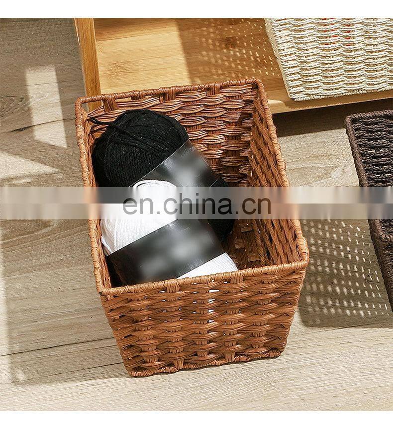 New Arrival Rectangular Washable Rattan Straw Woven Storage Basket Desktop Sundries Sorting Storage Woven Basket