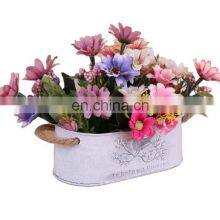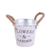 New Design Wholesale Home Decorative Garden Tabletop Plants Antique White Color Metal Painting Flower Pots With Hemp Handle Flower Vase